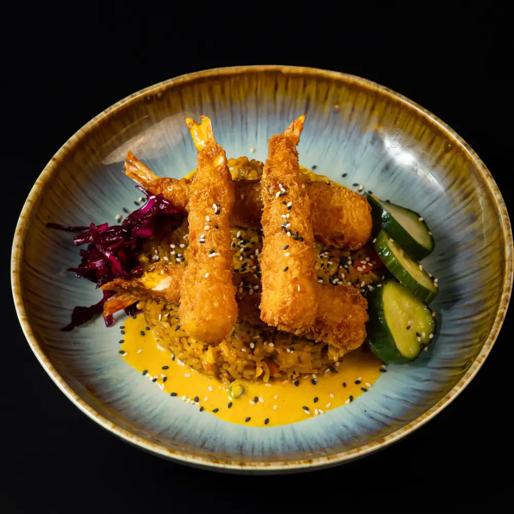 *au choix poulet, karaage, crevettes tempura ou végétarien